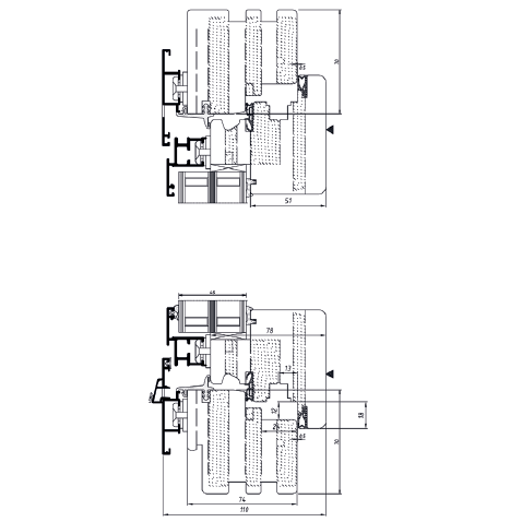| Rozměry: | Stavební hloubka rámu: 94, 5 mm Pohledová šířka rám/křídlo: 125 mm |